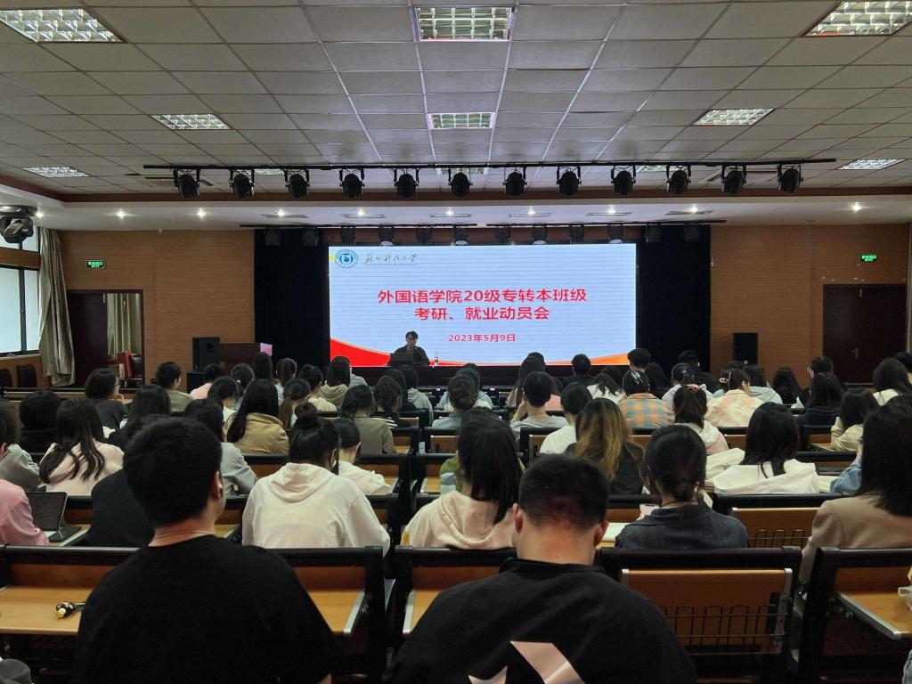 为做好开云(中国)2020级英语专转本学生考研、就业指导工作,帮助2020级学生提前了解考研、就业形势及状况,提高就业和考研升学的积极性,树立正确就业择业观。2023年5月9日下午18时30分,开云(中国)夏云康老师在C2-五楼报告厅举办了开云官方站在线登入2020级英语专转本班级考研、就业动员会。