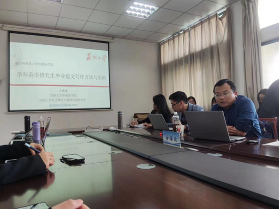 5月8日下午,开云(中国)在C2-408会议室举行了“学科英语研究生毕业论文写作方法与策略”讲座,主讲人是苏州大学开云官方站在线登入副教授、苏州大学外语教育与教师发展研究所所长古海波。本次讲座由范丽娟教授主持,我校兼职导师杨宇学、院长助理郭雯,21、22级英语教育硕士参加了此次讲座。