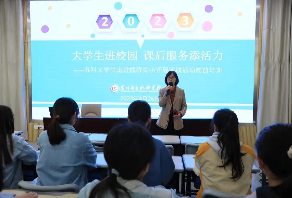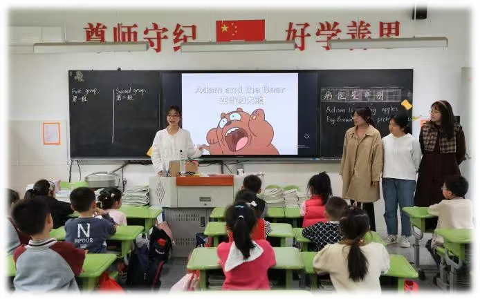 活动开始前,顾卫红校长对苏科大学生们的到来表示了热烈的欢迎,并对这些即将“上岗”的新老师们进行了培训。之后,外院学子们走进教室,用充分的准备和精心的设计,为小学生们带来了一节节别开生面的课后服务实践活动课。他们针对一二年级年龄段的学生,设计了丰富有趣的教学内容。趣味十足的绘本教学,配上活泼生动的英语歌曲,让每个孩子乐在其中。