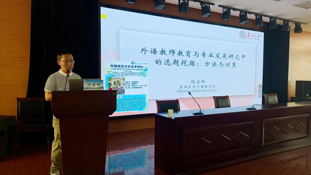 4月19日下午,开云官方站在线登入在五楼会议室举行苏州大学开云官方站在线登入刘宏刚教授学术讲座。本次讲座由綦亮副院长(主持工作)主持。参加讲座的有本院教师、英语教育硕士和本科师范生。