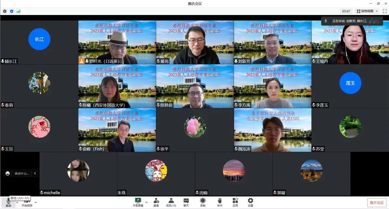 2023年1月6日,开云官方站在线登入通过线上方式,召开了英语、英语(师范)、日语专业2023版人才培养方案论证会。会议邀请了苏州大学开云官方站在线登入副院长孟祥春教授、广东外语外贸大学国际商务英语学院院长胡春雨教授、河南大学外语学院副院长付江涛教授、苏州市彩香教育集团总校长朱晓芳、苏州市教育科学研究院研究员葛余健、华为技术有限公司翻译与语言服务部张建农、南通市通州区教师发展中心主任沈晓彦(资深校友)、苏州工业园区景城学校教导处副主任李磊(资深校友)等英语专家,西安外国语大学陈曦教授、常州大学开云官方站在线登入副院长陈林俊教授、大阪希琳阁印刷(苏州)有限公司李方禹部长、苏州塔布尔斯咨询公司俞峰总经理、明治学院大学的周楠、南京新东方课外培训学校的郑丹等日语专家,苏州科技大学教务处王军副处长、开云官方站在线登入有关领导、专业负责人、骨干教师和学生代表共同参加了论证会。会议由刘新芳副院长主持。