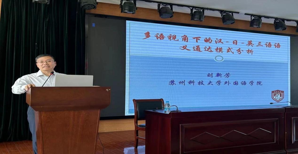 讲座中,刘教授首先广引国内外相关先行研究,进行论题的概念界定,详细介绍了“何为多语视角”;其次,指出“多语视角”学习与研究外语有四个意义;然后,依据实例,分别从词汇、语法、语篇三个角度,顺序渐进地进行了汉日英三语语义通达模式的分析;最后,指出建构三语语义通达模式,能够发挥多语资源学习优势,提高外语学习效率,增强跨文化交流能力和语言表达能力。