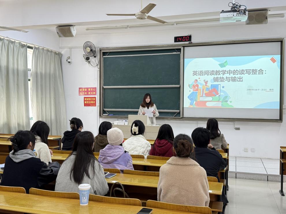 曹茜同学分享的书籍是《英语阅读教学中的读写整合:铺垫与输出》,她提出读写结合课与其他课的区别在于这里的阅读的终极目标是为了更好地写,因此怎么读、读什么是教师需要思考的事情,同时在这个过程中要注意多元性评价,尤其是形成性评价的实施。徐灵同学分享的书籍是《英语阅读教学中的读后活动:设计与实施(第二版)》,她将整本书总结为七个问题,进行逐个讲解,她强调教师要对教学的目标和重点做到熟悉,并为学生的建构制定合理的支架。白雪同学分享的书籍是《英语阅读与思维培养》,她为我们介绍了阅读与思维的关系,阅读与思维相辅相成,阅读为思维提供材料,思维则通过对材料的加工促进更深层次的阅读理解。薛淼同学分享的书籍是《英语教师课堂话语分析》,她将书中强调的一些原则与实际教学出现的问题相结合,从自己的角度提出了一些教学建议,倡议大家在英语课堂上注重教师用语的真实性、互动性、逻辑性和规范性。贺晗宁同学分享的书籍是《英语词汇教学》,她解释了词汇教学最基本的三个问题,也就是学什么、怎么学和怎么教,她认为要在语境中学,且在语境中反复学。张易哲同学分享的书籍是《文化话语研究》,他解释了什么是话语,并介绍了话语的建构性、权力性、媒介性、对话性、历史性和文化性,此外他还阐释了话语研究的意义。华东同学分享的书籍是《备课专业化》,她为我们介绍了备课专业化的三大价值,于学校能够提高教学质量,于教师能够让备课从经验走向专业,于校本教研能够实现理论与实践的互联互通。李哲同学分享的书籍是《语料库与话语研究》,她介绍了语料库在教学中发挥的作用,能够帮助学生理解语言的实际使用情况,可以用于开发教学内容,还能够促进教学方法的创新。刘婧婧同学分享的书籍是《外语教学问卷调查法》,她告诉同学们要注重问卷设计的语言表述,要做到简洁明了,避免歧义,并适应受访者的语言水平和文化水平。