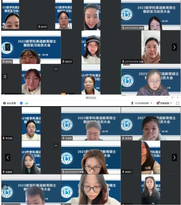 为进一步规范开云官方站在线登入教育硕士实践教学工作,促进实践教学有效开展,加强实习工作的组织与管理,开云(中国)于2月18日下午线上召开23级学科英语教育硕士期初实习动员会。院长助理郭雯老师、学科英语教学专业负责人范丽娟老师,以及24名同学全体参与。会议由郭雯老师主持。