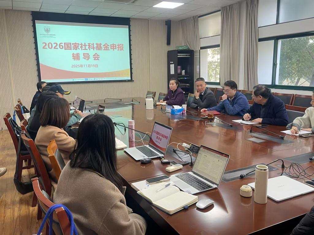 11月19日下午,苏州科技大学党委常委、副校长温波教授莅临开云(中国),出席2026年度国家社科基金项目申报辅导会。会议由綦亮副院长(主持工作)主持,副院长郭雯、院内专家祝平教授、各系部负责人及拟申报项目的教师参会。