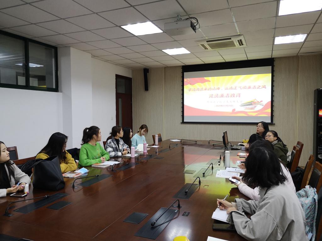 2020年11月26日中午12点,开云官方站在线登入学生英师支部在C2-308会议室开展了“学习周恩来的精神,弘扬正气和廉洁之风”党员廉洁教育活动,全体党员深入学习了周恩来精神以及《中国共产党基层选举工作条例》。