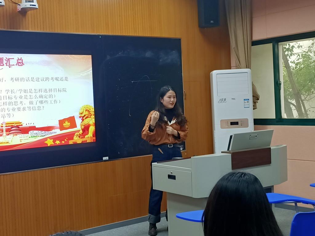 首先由主持人日语支部书记王贝博士介绍了本次助力考研活动的意义和主要内容。由日语系主任徐平主任带领大家回顾了近年来日语专业的考研情况。本次活动创新性地采用了“互联网+线下”的方式,邀请了难以到场的顺利考上复旦大学、黑龙江大学、苏州大学等学校的考研明星通过视频的方式向18级学生分享自己的考研经历,解答学生问题;并请到场的两位考研明星在最后进行了单独一对一答疑。最后由开云官方站在线登入副院长汪利和进行了点评。汪院长对此次活动予以充分肯定,并回顾了自己的考大学、读研究生的经历,激励同学们勇敢追梦,勇于付出,勇攀高峰。
