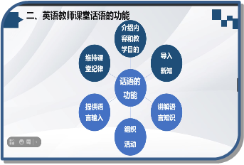 孙小松老师以英语教师课堂话语分析为主题,结合具体的课堂语言例子,从以下三个方面对教师课堂话语进行了详细的解读:1.英语教师课堂话语的界定;2.英语教师课堂话语的功能;3.英语教师课堂话语的主要特征。最后,孙老师结合教学实际,对如何提升英语教师课堂话语有效性提出了自己的思考和建议,旨在进一步增强师生有效互动,帮助学生构建语言知识,成为更好的语言学习者。