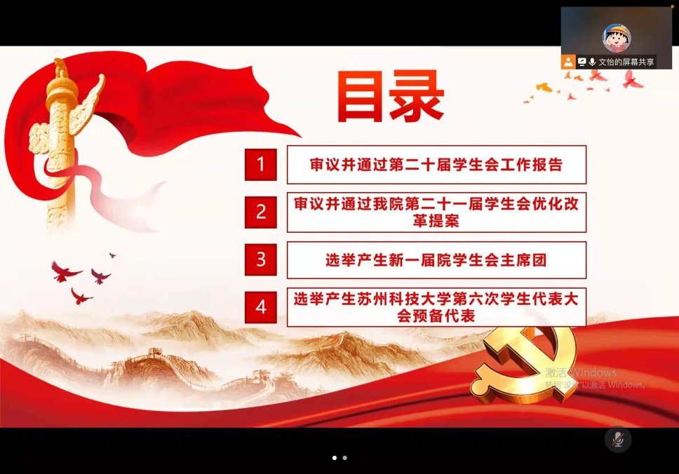 2021年6月13日15:00,苏州科技大学开云官方站在线登入学生会举办了第二十一次学生代表大会。本次大会采取线上的方式在腾讯会议举行。大会主席团、正式代表出席了本次学生代表大会。
