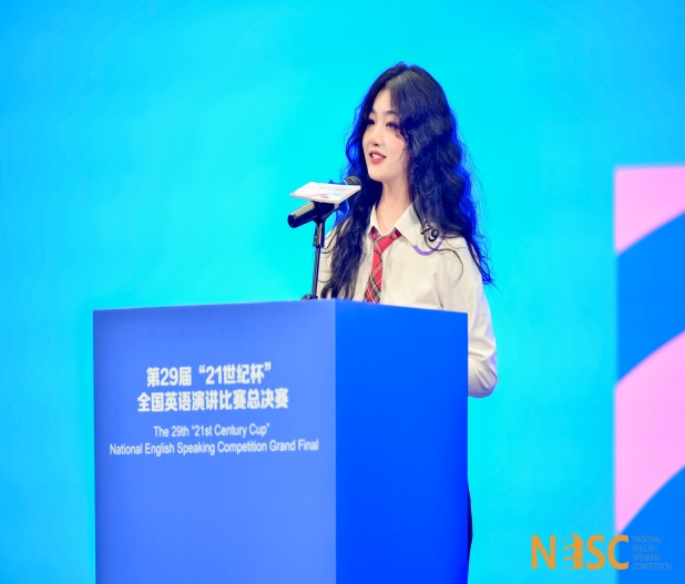 在近日落幕的第29届“21世纪杯”全国英语演讲比赛总决赛中,开云官方站在线登入英语(专转本)Z2111班的聂兰欣同学,以其出色的发挥荣获二等奖,这一成绩刷新了我校在该项赛事中的最佳成绩记录。指导教师是钱园和王妍老师。